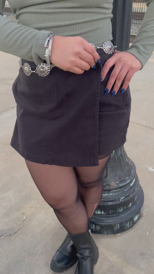 introducing the Velma Skort, the ultimate combination of style and comfort! Made from a dark jean material with a trendy wrapped design, this skort is perfect for any occasion. With pockets for added convenience and a high-rise fit for a flattering silhouette, you'll never want to take it off. Plus, the added stretch ensures all-day comfort without sacrificing style. Say goodbye to uncomfortable clothing and hello to the Velma Skort – your new wardrobe staple. Get yours today and elevate your look effortlessly! #VelmaSkort #FashionForward #ComfortMeetsStyle