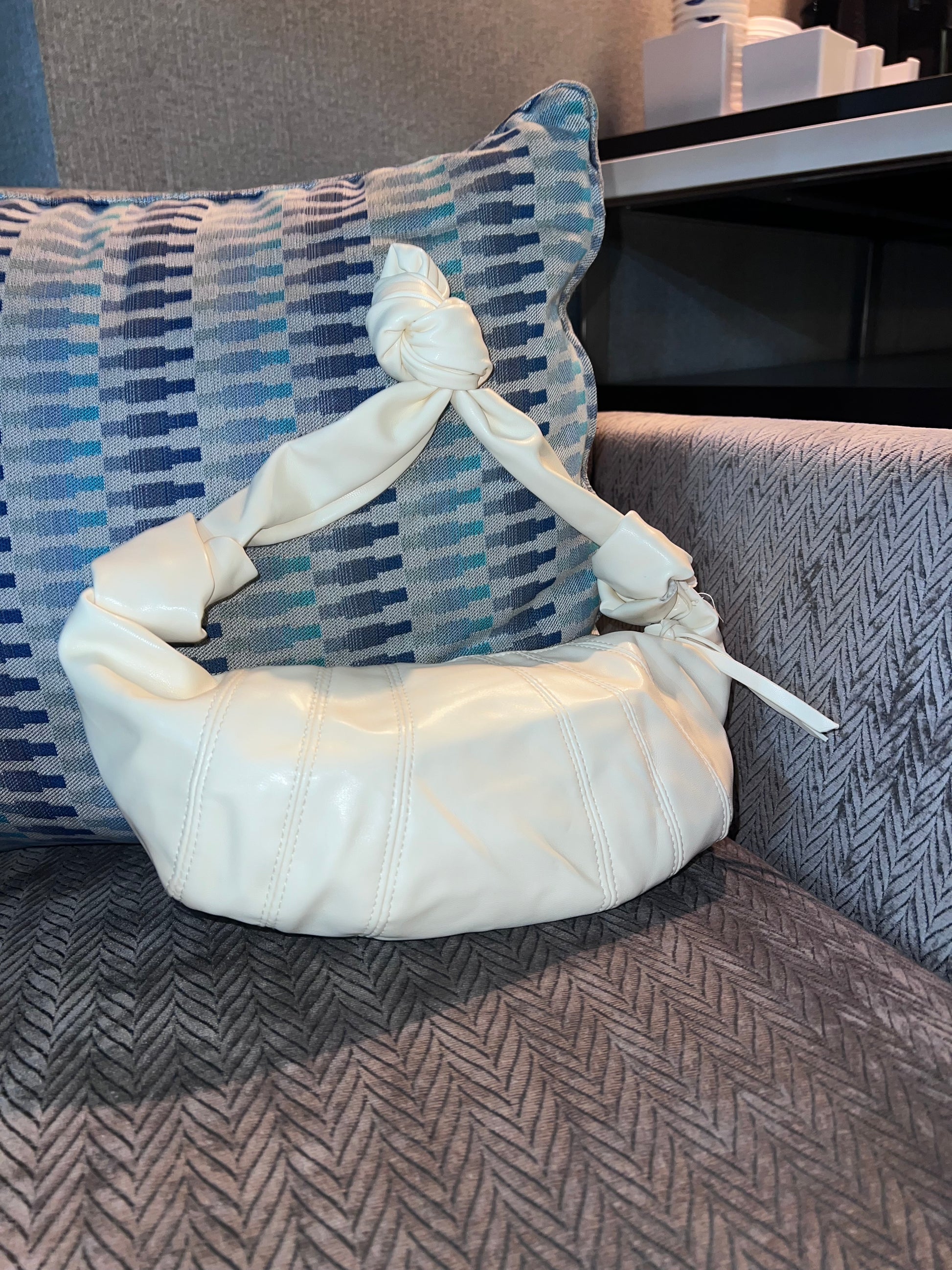 White vegan leather croissant Crossbody tag design comfortable durable material large capacity